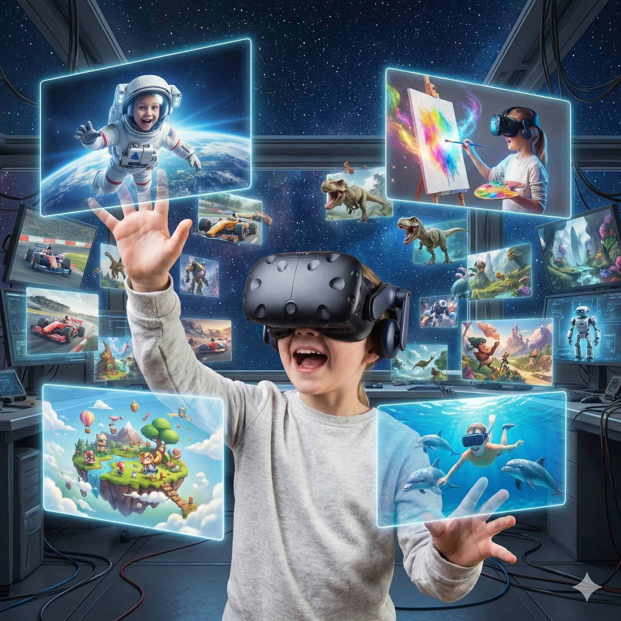 Připravte se na dobrodružství, které vaše děti jen tak nezažijí! V našem kroužku virtuální reality se promění například na cestovatele, sportovce, potápěče, kosmonauty nebo také na obránce vesnice před nájezdníky.